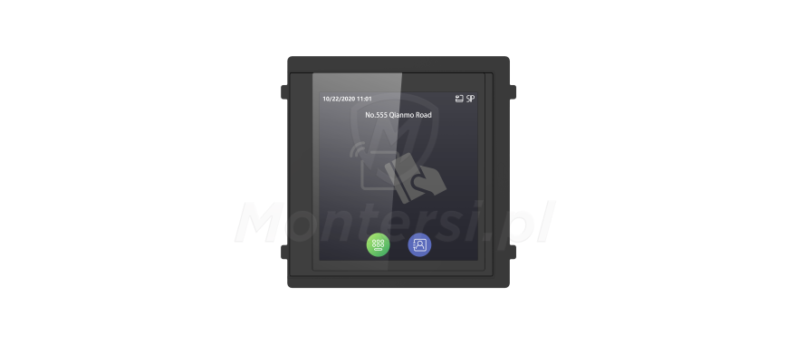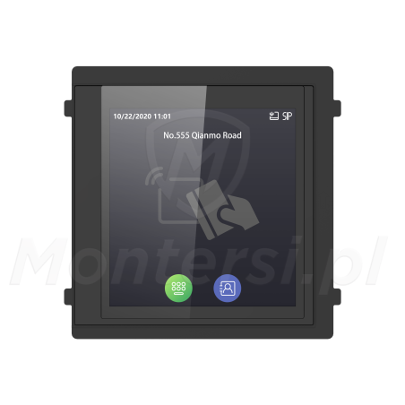 DS-KD-TDE - Moduł wyświetlacza kolorowego z wbudowanym czytnikiem kart oraz klawiaturą przeznaczony do współpracy z II generacją wideodomofonów marki Hikvision (IP i 2-żyłowych). Urządzenie wyposażone w 4" wyświetlacz mogący wyświetlać klawiaturę numeryczną, dedykowane przyciski, informacje o czasie trwania połączenia, liście lokatorskiej czy otwarciu drzwi a nawet grafiki reklamowe. Moduł wyposażony jest również w czytnik kart Unique umożliwiający przyznanie dostępu po zbliżeniu odpowiedniej karty zbliżeniowej.