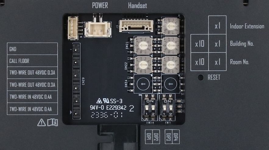 Monitor został wyposażony w 5 obrotowych oraz 4 dwupozycyjne przełączników. Za ich pomocą ustawimy tryb pracy urządzenia oraz skonfigurujemy monitor do pracy z odpowiednim panelem zewnętrznym.