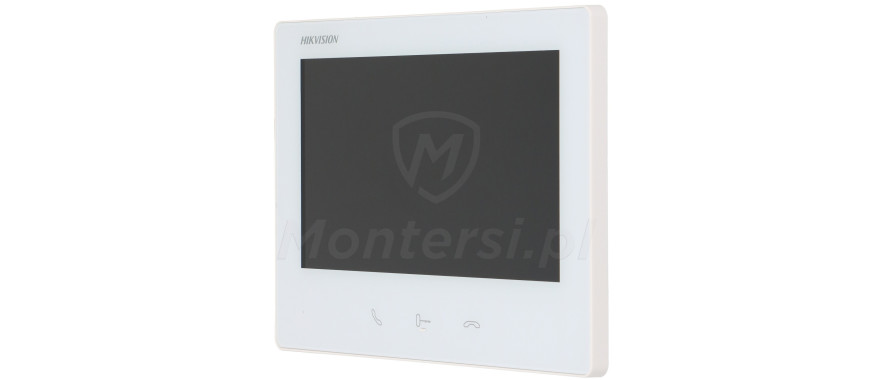 DS-KH7300EY-WTE2 - Głośnomówiący monitor, pracujący w 2 - przewodowym systemie wideodomofonu HikVision. Do monitora można podłączyć zarówno czujniki jak i sygnalizatory .