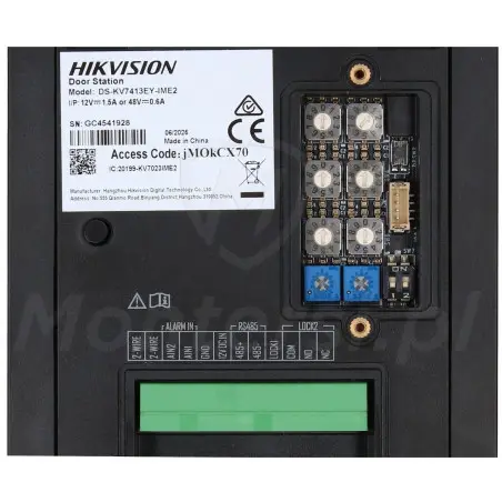 Stacja zewnętrzna DS-KV7413EY-IME2Moduł główny systemu 2-żyłowego w zestawie KIS to nowoczesna stacja bramowa wykonana z trwałego aluminium, odporna na uszkodzenia mechaniczne i akty wandalizmu (IK08). Urządzenie wyposażono w kamerę 2 Mpx, wbudowany czytnik kart oraz możliwość obsługi od 1 do 4 przycisków wywołania, których konfiguracja odbywa się za pomocą maskownicy dołączonej do zestawu. Stacja zasilana jest napięciem 48 V DC poprzez dystrybutor i posiada dwa wyjścia przekaźnikowe do sterowania zamkami, wejście przycisku wyjścia, wejście czujnika drzwiowego oraz dwa wejścia alarmowe. Obudowa o klasie szczelności IP65 gwarantuje niezawodną pracę w trudnych warunkach atmosferycznych, w zakresie temperatur od –40 °C do +60 °C. System umożliwia obsługę do 400 monitorów wewnętrznych oraz 16 podstacji, zapewniając elastyczność i bezpieczeństwo w nowoczesnych instalacjach wideodomofonowych. |