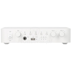 DS-QAE1A80G1-VB - Wzmacniacz miksujący o mocy maksymalnej 80 W (2 x 40 W) przeznaczony do realizacji nagłośnienia w systemie PA. Do wzmacniacza możemy podłączyć mikrofon poprzez złącze 6.3 mm oraz dwa urządzenia korzystające ze złącz RCA. Na froncie urządzenia zamontowano dodatkowo gniazdo USB umożliwiające podłączenie pamięci flash. Do najważniejszych zalet wzmacniacza zaliczyć można:
