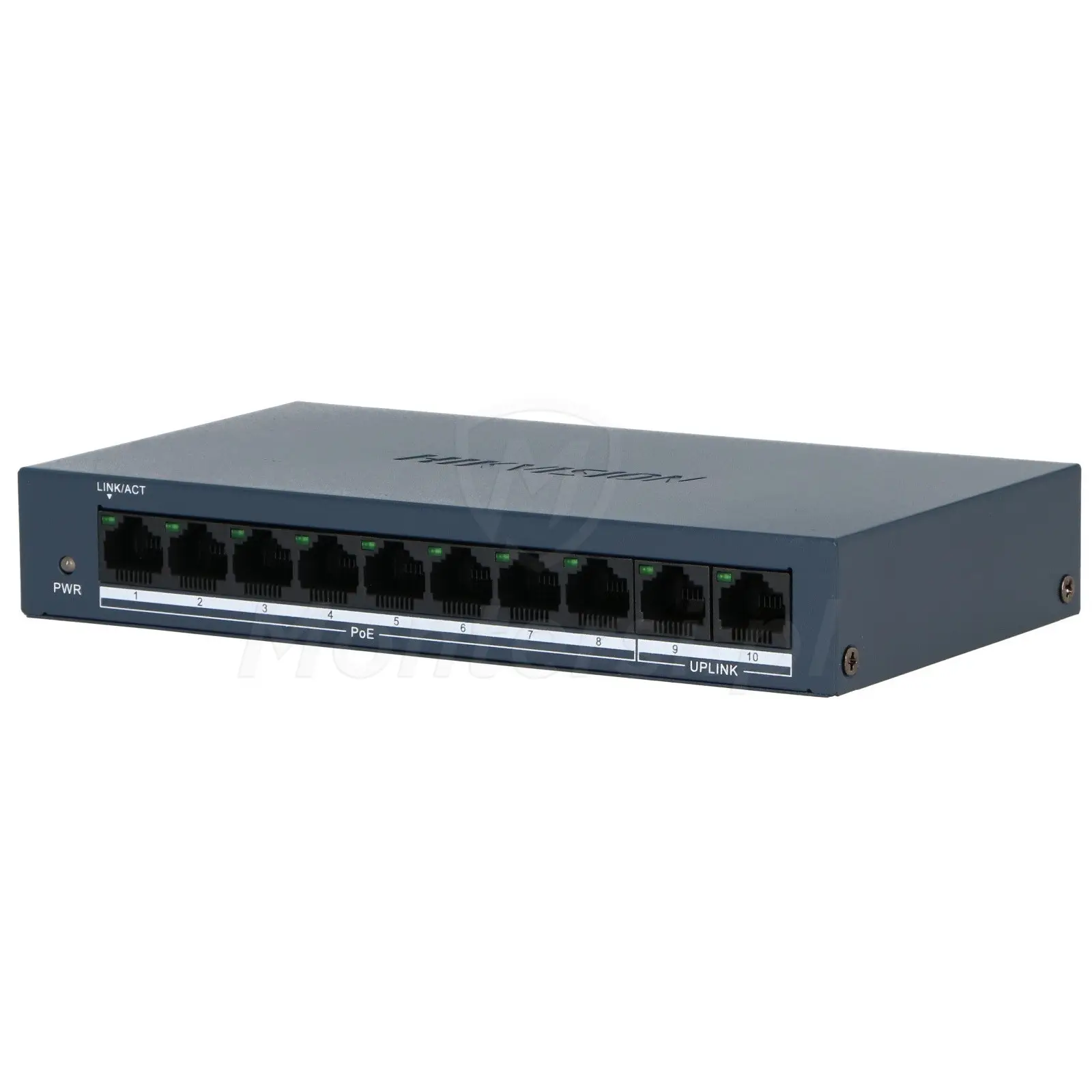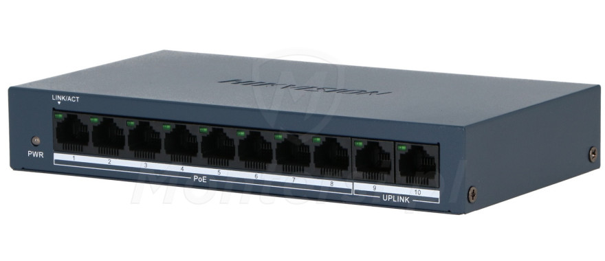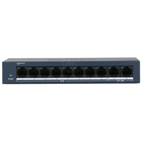 DS-XS0110-P - 10-portowy przełącznik sieciowy, dedykowany do pracy w systemie monitoringu IP. Uniwersalny i niezawodny, umożliwia transmisję danych i realizację zasilania 8 dowolnych kamer IP PoE. Cechuje się on również wysoką funkcjonalnością i stabilnymi parametrami pracy ciągłej.