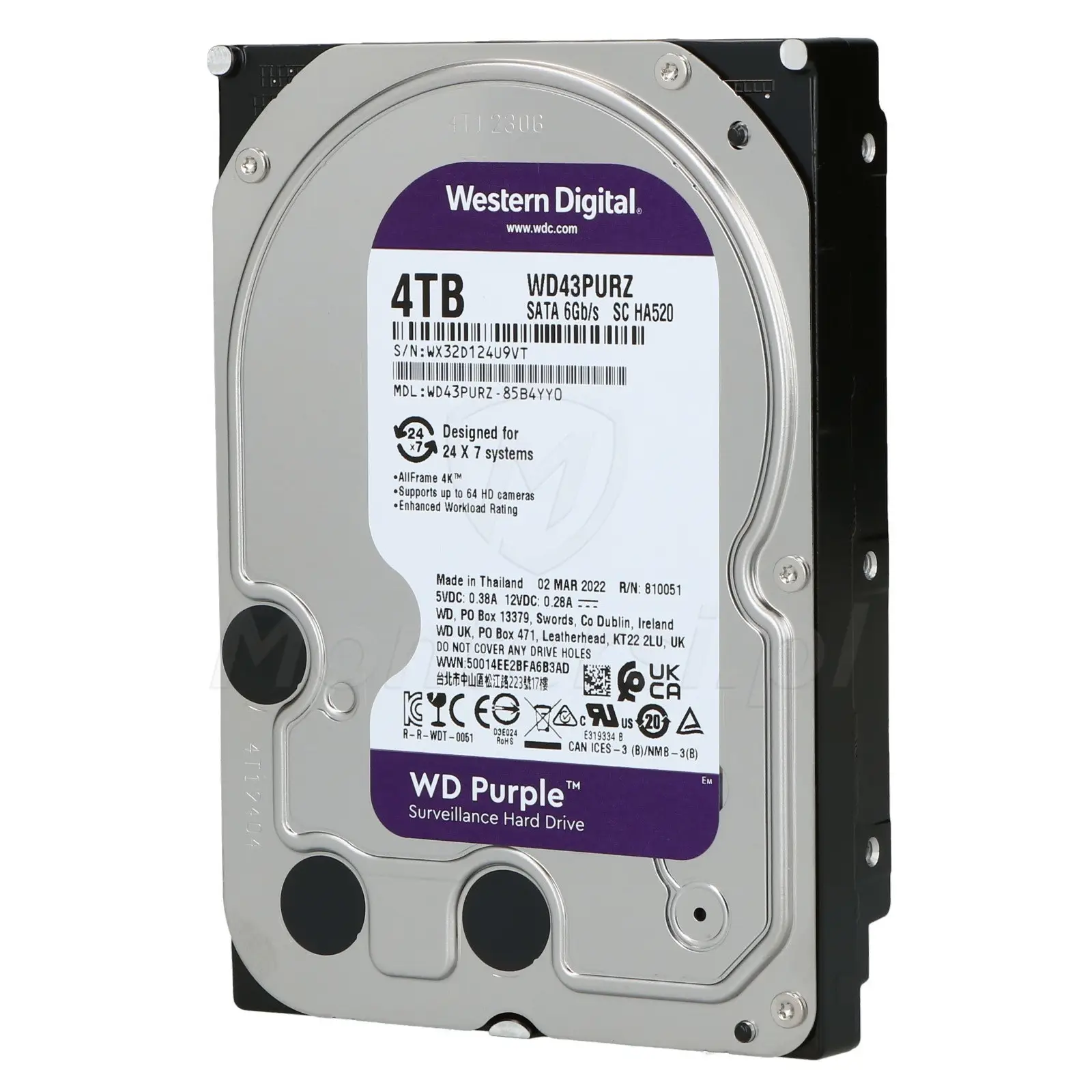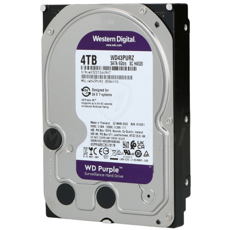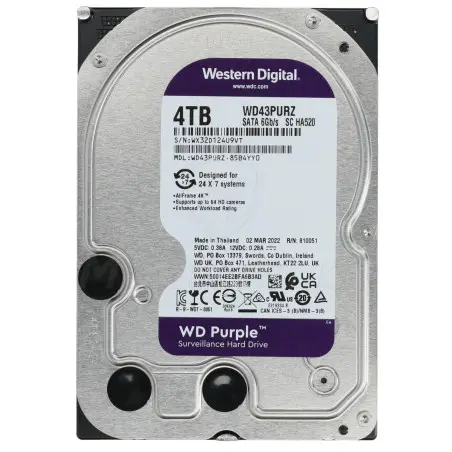 Dysk twardy Surveillance 4 TB, zaliczany do serii WD Purple. Cechuje się niezawodnością, trwałością i stabilnymi parametrami, podczas pracy ciągłej (24 godziny / 7 dni w tygodniu). Jest on więc doskonałym wyborem do realizacji systemu monitoring CCTV.