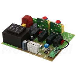 eL12H - Sterownik przeznaczony do napędów bramowych umożliwiający obsługę dwóch siłowników na napięcie 230 V AC bez krańcówek. Urządzenie jest wyposażone w odbiornik radiowy wykorzystujący kodowanie dynamiczne KeeLoq i współpracuje z pilotami działającymi na częstotliwości 433.92 MHz.
