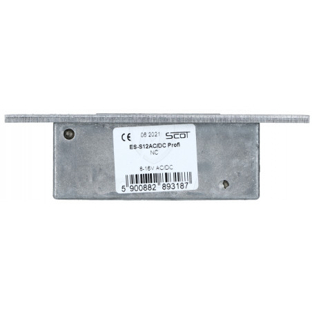 Elektrozaczep standardowy (NC), symetryczny, 12V AC/DC, regulacja języka z listwą mocującą 100mm.