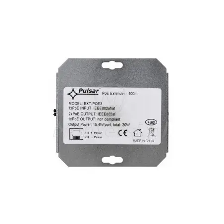 EXT-POE3 - Extender PoE umożliwiający zwiększenie zasięgu przesyłu danych i zasilania PoE po skrętce UTP (cat. 5 / 5e) o dodatkowe 100 m. Niezawodny i uniwersalny znajduje szerokie zastosowanie w rozległych sieciach LAN i systemach monitoringu IP. Do elementów wyróżniających ekstendera PoE można zaliczyć:
