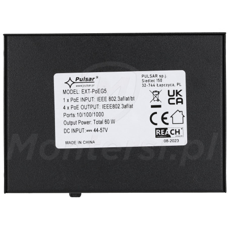 - Wyjście: 4x RJ-45 (4x IEEE 802.3af/at)
