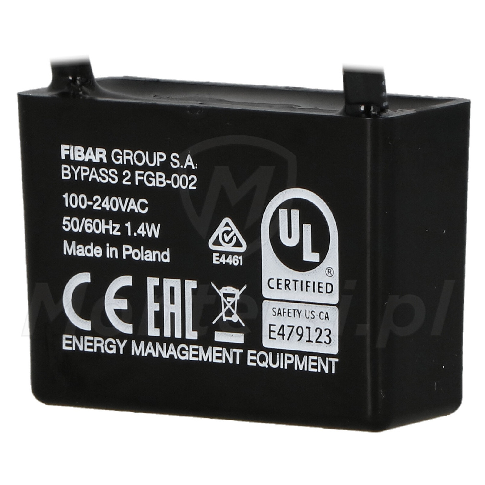 FGB-002 - Układ Bypass 2 przystosowany do współpracy ze ściemniaczem FIBARO Dimmer 2. Umożliwia prawidłową współpracę ściemniacza ze źródłami światła małej mocy (minimalnie 5 VA) i zapobiega migotaniu oświetlenia LED oraz żarzenia się wyłączonych świetlówek. Układ Bypass 2 podłącza się równolegle do źródeł światła takich jak np. żarówki LED lub elektrooszczędne świetlówki.