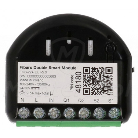 FGS-224 - Podwójny przełącznik przekaźnikowy, dedykowany do włączania / wyłączania urządzeń i obwodów elektrycznych. Przy jego pomocy możliwe jest sterowanie dwoma urządzeniami lub obwodami, których pobór prądu nie przekracza 6 A (9.5 A łącznie, na dwa kanały). Przykładowo można go użyć do sterowania systemem ogrzewania, systemem oświetlenia, bramą wjazdową lub garażową. Przełącznik Double Smart Module jest jednym z podstawowych elementów systemu inteligentnego domu FIBARO i umożliwia sterowanie urządzeniami bezprzewodowo lub przy pomocy podłączonego przełącznika.