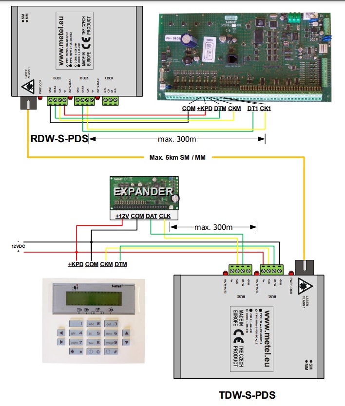 FIWRE-S-PDS - Zestaw konwerterów światłowodowych składający się z nadajnika TDW-S-PDS-BOX/12 oraz odbiornika RDW-S-PDS-BOX/12. Zestaw przeznaczony do transmisji sygnału z magistrali w systemie alarmowym Satel INTEGRA. Urządzenia wykorzystują cyfrową modulację i zapewniają wysoką jakość transmisji danych na spore odległości. Wykorzystanie transmisji światłowodowej zapewnia szybki transfer informacji oraz odporność na zakłócenia.