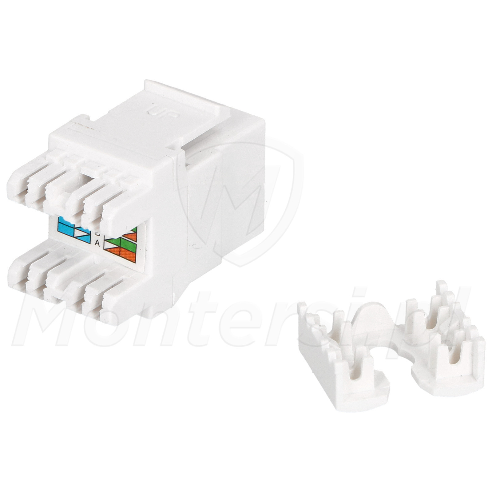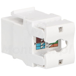 FX-RJ45-65 - Złącze keystone kategorii 6 przeznaczone do montażu w patch panelach. Zastosowane szybkozłącze Krone wpływa na szybszy montaż żył. Obudowa wykonana z tworzywa sztucznego w standardzie Keystone gwarantuje kompatybilność z gniazdami wykonanymi w tym standardzie. Zaletą gniazda jest również prosty montaż w panelu na zasadzie zatrzasku złącza.