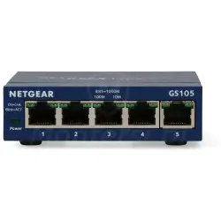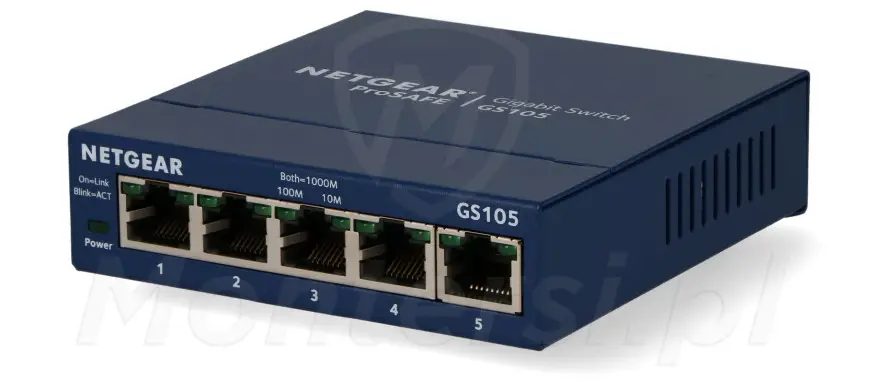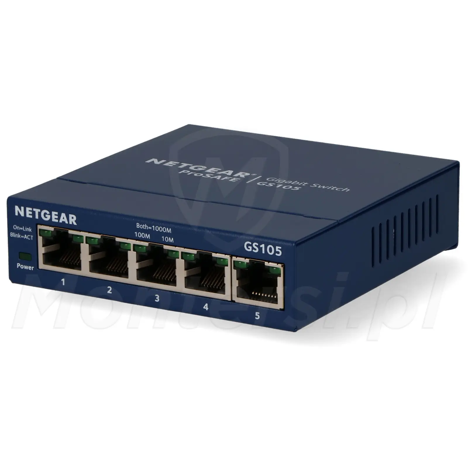 GS105GE - 5-portowy, niezarządzalny switch NETGEAR Gigabit, dedykowany do pracy w systemie monitoringu IP lub jako element standardowej sieci internetowej. Wykonany z wysokiej jakości elementów i spełniający rygorystyczne testy, cechuje się niezawodnością, stabilnymi parametrami pracy i jest energooszczędny. Do cech charakterystycznych switcha GS105GE można zaliczyć:
