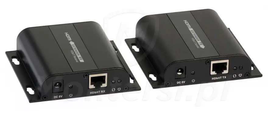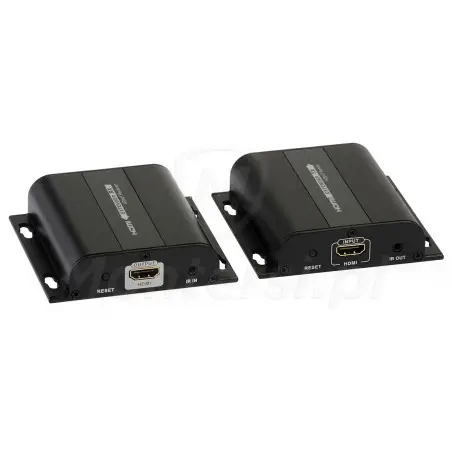 Konwerter HDMI - Urządzenie umożliwiające konwersję sygnału HDMI w rozdzielczości 1080p na IP umożliwiające przesłanie go przewodem sieciowym standardu 5e lub 6 na odległość do 100 metrów. Dodatkowo poza przesłaniem sygnału z HDMI konwerter umożliwia przesłanie sygnału z pilota IR, by w wygodny sposób sterować odbiornikiem TV lub rejestratorem. Do najważniejszych cech urządzenia zaliczyć można: