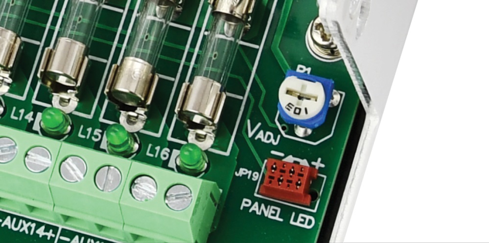 Na wyposażeniu zasilacza HPSDC-12V16x1A znajduje się potencjometr, dzięki któremu możemy regulować wartość napięcia wyjściowego. Może być ono zmieniane w granicach 12 - 15 V DC. Regulacja dokonywana jest dla wszystkich kanałów jednocześnie.