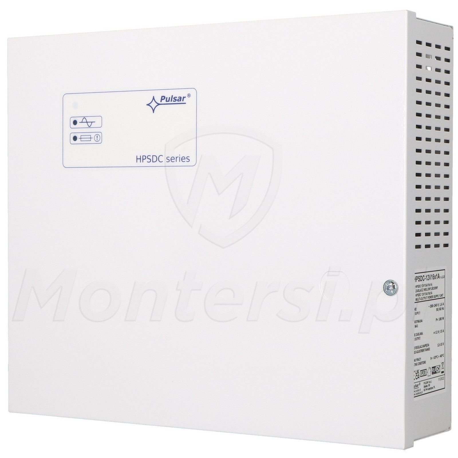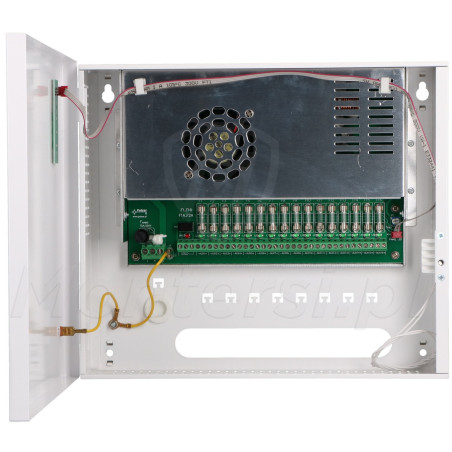 HPSDC-12V16x1A - Stabilizowany zasilacz impulsowy, dedykowany do pracy w systemie monitoringu. Przy jego pomocy możliwa jest realizacja zasilania 16 kamer CCTV lub innych urządzeń wymagających napięcia 12V DC.