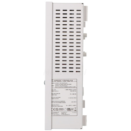 Do elementów wyróżniających zasilacza HPSDC-12V16x1A można zaliczyć: