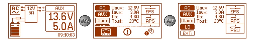 - Funkcja start, umożliwiająca manualne załączenie zasilacza z akumulatora