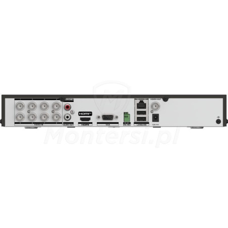- Rozdzielczość obsługiwanych kamer: 8 Mpx @ CVI / TVI, 5 Mpx @ AHD, 8 Mpx @ IP