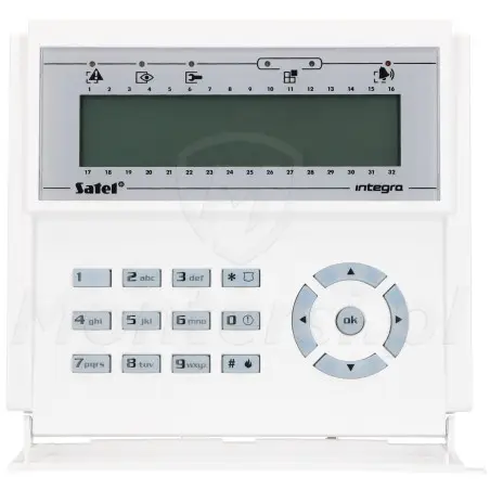 INT-KLCD-W - Manipulator do central SATEL INTEGRA. Wbudowane 2 dodatkowe wejścia, wyświetlacz alfanumeryczny.
