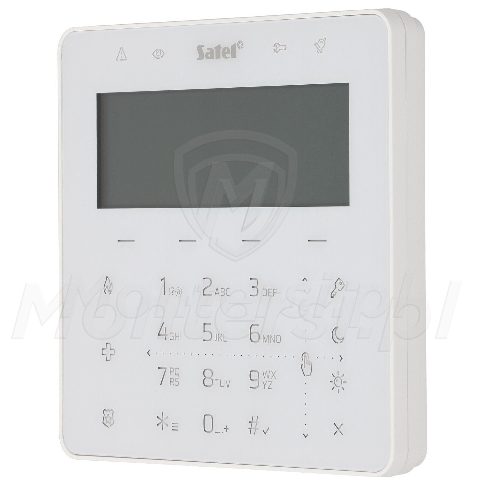 - Duży, czytelny wyświetlacz LCD z podświetleniem umożliwiający szczegółowe informowanie o stanie systemu