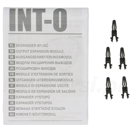 INT-O - Ekspander wyjść do central alarmowych Satel serii INTEGRA, INTEGRA Plus, VERSA, PERFECTA i CA-64. Umożliwia rozszerzenie systemu alarmowego o dodatkowe 8 wyjść przekaźnikowych / 8 wyjść niskoprądowych typu OC (otwarty kolektor). Wyjścia niskoprądowe i przekaźnikowe są połączone równolegle (np. wyjście drugie jednocześnie aktywuje przekaźnik OUT2 oraz podaje masę na OUT2).