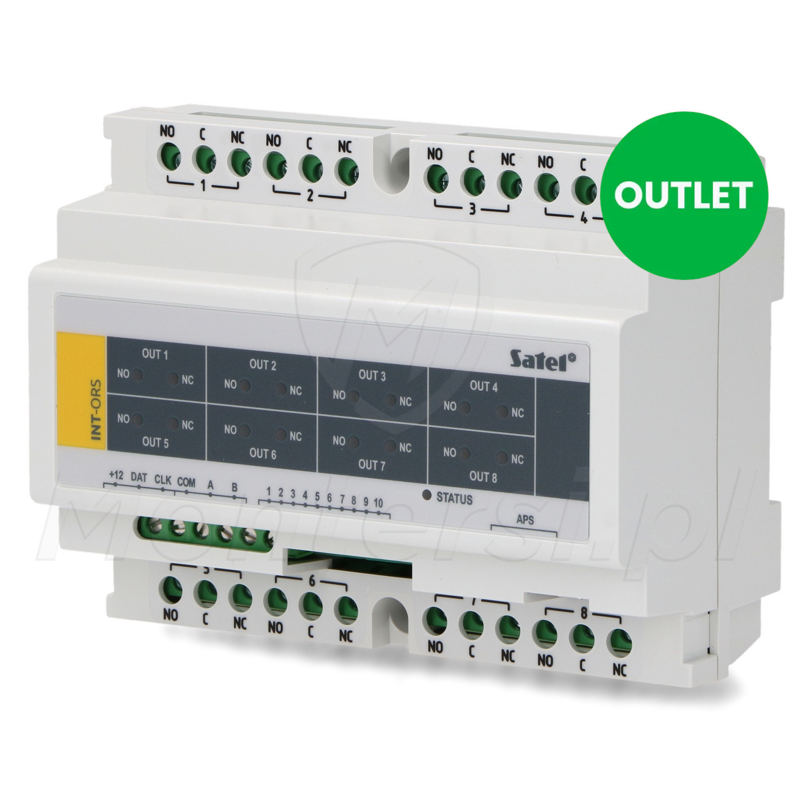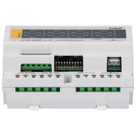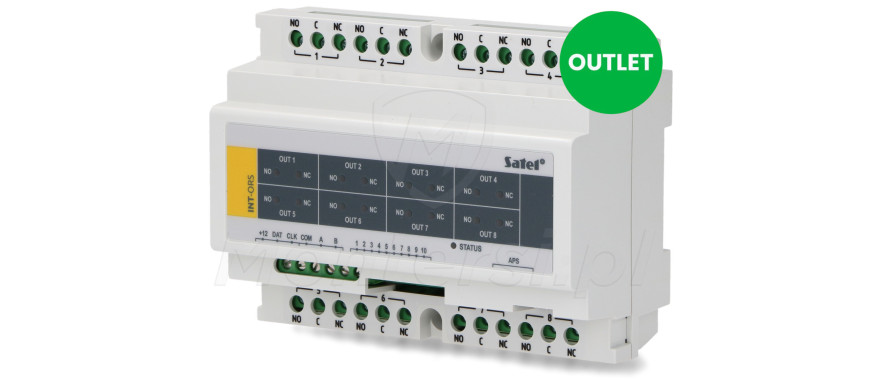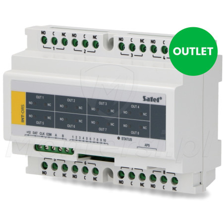 INT-ORS - Ekspander 8 wyjść przekaźnikowych (250V / 16A) na szynę DIN 35 mm. Współpracuje z centralami SATEL INTEGRA, VERSA oraz PERFECTA.