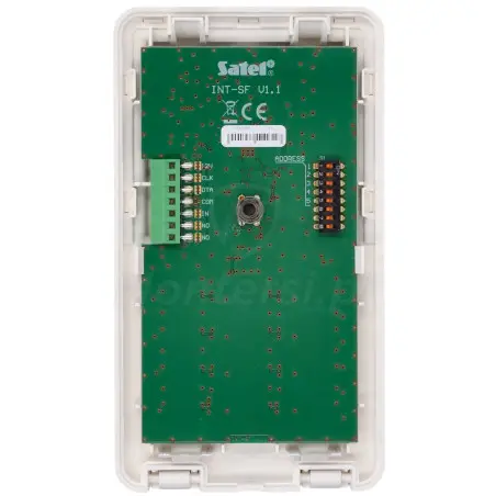 INT-SF-W - Klawiatura strefowa, dedykowana do współpracy z centralami alarmowymi serii INTEGRA i INTEGRA Plus. Przystosowana do montażu wewnątrz pomieszczeń, umożliwia sterowanie 1 strefą alarmową - załącz / wyłącz czuwanie, zmień hasło, wywołaj alarm: