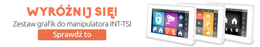 Cechą charakterystyczną manipulatora serii INT-TSI jest wbudowany ekran dotykowy 7" TFT LCD. Wyświetla on obraz w rozdzielczości 800 x 480 i sprawia, że codzienna obsługa systemu jest prosta i intuicyjna - przypomina obsługę smartfonu lub tabletu. Nawet osoby, które nie miały wcześniej styczności z manipulatorem INT-TSI, powinny bez większych problemów dać sobie z nią radę.