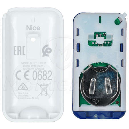 INTI2B - Dwukanałowy pilot radiowy 433.92 MHz z 72-bitowym kodem dynamicznie zmiennym, nowoczesny design w kolorze niebieskim, wbudowany odbiornik zbliżeniowy, kompatybilny z FLOR i ONE. Obsługa Nice Opera.