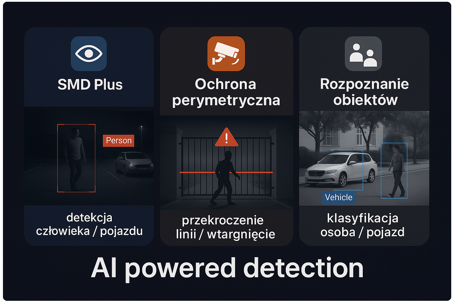 - Funkcje Ai: Inteligentna detekcja ruchu, Ochrona perymetryczna