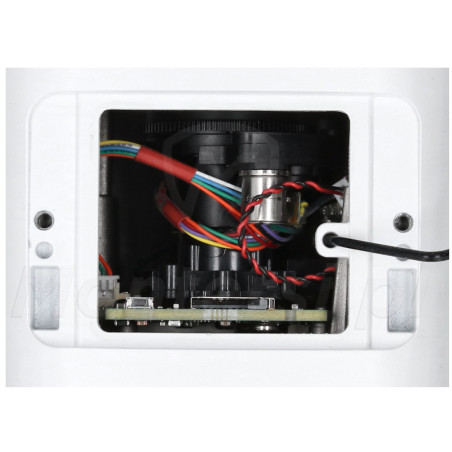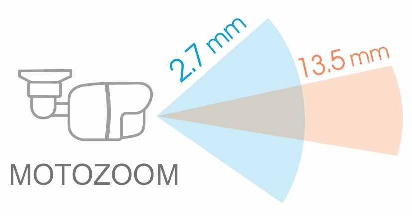Kamera została wyposażona w obiektyw zmiennoogniskowy typu motozoom o zakresie 2.7–13.5 mm, co umożliwia zdalne przybliżanie i oddalanie obrazu bez konieczności fizycznej ingerencji. Zakres ogniskowej pozwala uzyskać szeroki kąt widzenia do 114° (do obserwacji otwartych przestrzeni) lub wąski, skoncentrowany obraz 32° (np. na bramie wjazdowej lub konkretnym obiekcie).