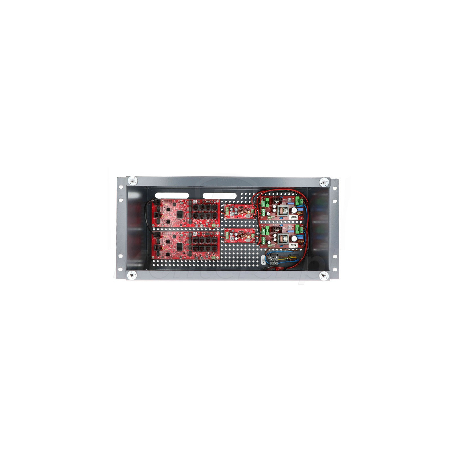 ABOX-R5U0 - Obudowa integrująca system zasilana IPUPS-16-20, dedykowana do montażu w szafie standardu RACK 19". Sprawdza się ona świetnie w profesjonalnych, zintegrowanych systemach CCTV - systemach w których wszystkie kluczowe elementy są montowane w jednej szafie. Takie rozwiązanie umożliwia utrzymanie wysokiego standardu instalacji i jednocześnie ułatwia późniejsze zarządzanie systemem i wprowadzanie zmian. Do cech charakterystycznych obudowy można zaliczyć: