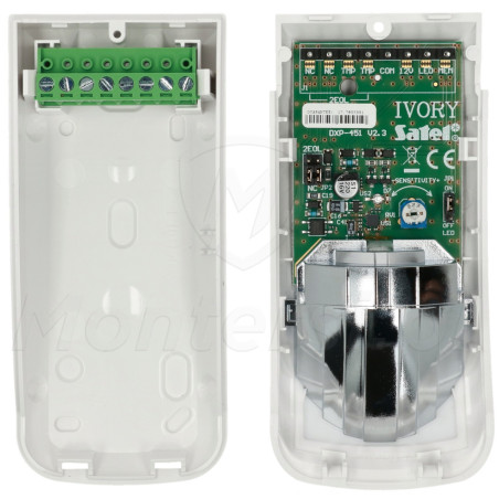 Układ optyczny IVORY działa w oparciu o wysokiej jakości lustro segmentowe, które zapewnia jednakową czułość w całym obserwowanym obrzeże oraz eliminuje tzw. martwą strefę. Prezentowany model posiada płytkę elektroniki z wbudowanymi rezystorami w konfiguracji 2EOL i certyfikat EN-50131 GRADE 2.