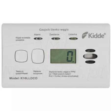 K10LLDCO - Autonomiczny detektor tlenku węgla wyposażony w panel LCD. Cechuje się wysoką czułością i niezawodnością, które zawdzięcza zastosowaniu sensora elektrochemicznego. Czujnik wykonuje pomiar stężenia czadu co 1 sekundę i włącza alarm, gdy przekroczy on dopuszczalny próg.