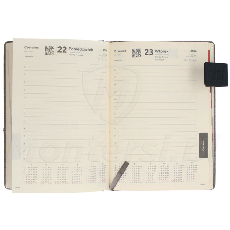 - Układ dzienny – jedna strona to jeden dzień, dzięki czemu kalendarz zapewnia dużo miejsca na notatki, spotkania i zadania