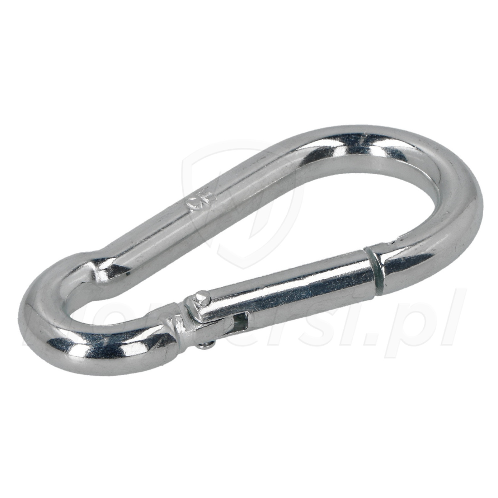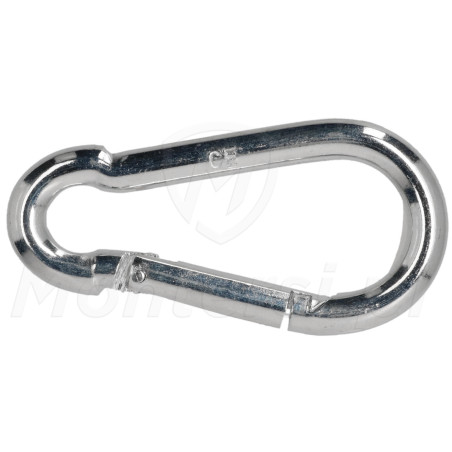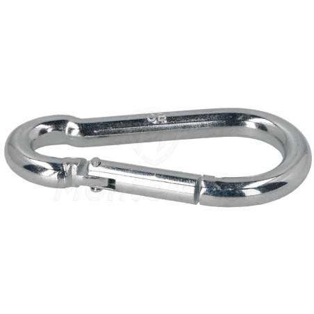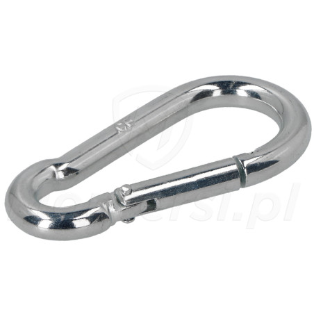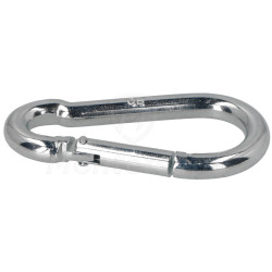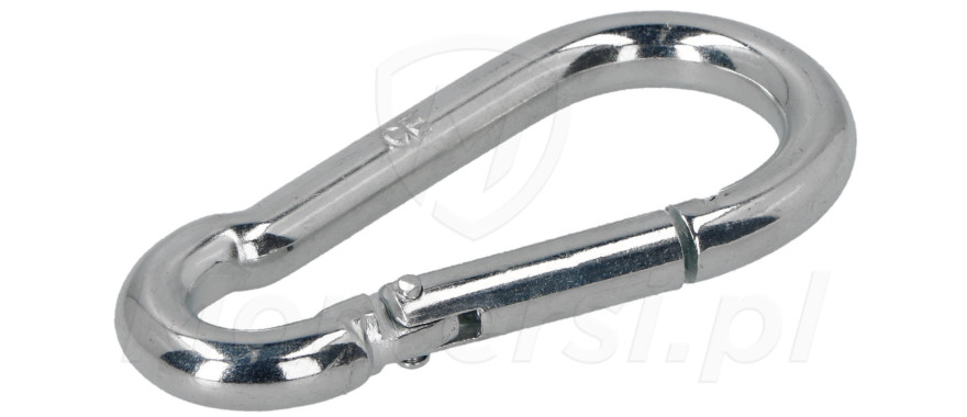 KAR-08 - Karabińczyk do lin 8 mm wykonany z ocynkowanej stali niskowęglowej. Wyposażony w sprężynujące zamykanie uniemożliwiające przypadkowe wypięcie.