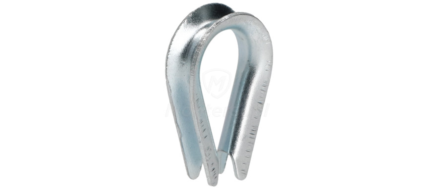 Kausza służąca do "zaokrąglenia" końca liny stalowej o średnicy 3 mm.