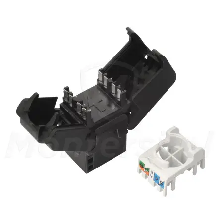 SXKJ-5E-UTP-BK-SA to keystone RJ45 kategorii 5E w wersji samozaciskowej, umożliwiający szybki montaż bez użycia specjalistycznych narzędzi. Moduł spełnia wymagania norm ISO/IEC 11801, EN 50173 oraz ANSI/TIA-568.2-D dla klasy D, zapewniając niezawodną transmisję danych w sieciach LAN. Obudowa w kolorze czarnym wykonana jest z trudnopalnego tworzywa (UL94-V0), a kompaktowe wymiary zapewniają kompatybilność z ramkami i gniazdkami wielu producentów.