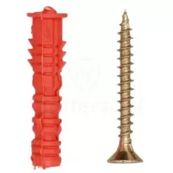 Zestaw 200 kołków rozporowych 6 x 30 mm z wkrętem - zakończonych łebkiem stożkowym z nacięciem krzyżowym typu POZIDRIVE.