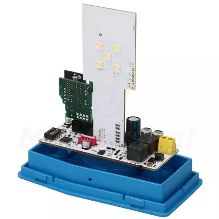 W płytkę z diodami wbudowano również dwuzakresową antenę, która skutecznie zwiększa zasięg pilotów. Dzięki temu możemy wcześniej użyć pilota dając napędowi więcej czasu na otwarcie bramy. Antena współpracuje z urządzeniami działającymi na częstotliwości 433 oraz 868 MHz co znacząco zwiększa wachlarz współpracujących urządzeń.