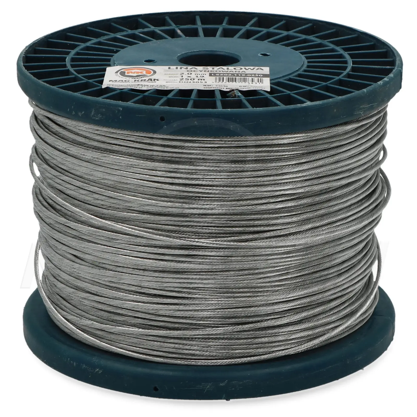 Ocynkowana linka stalowa o średnicy 2 mm, wykonana w splocie konstrukcyjnym 1 x 19. Charakteryzuje się dobrą odpornością na zerwanie (siła zrywająca 3.84 kN) i rozciąganie, dzięki czemu doskonale sprawdza się w pracach konstrukcyjnych.