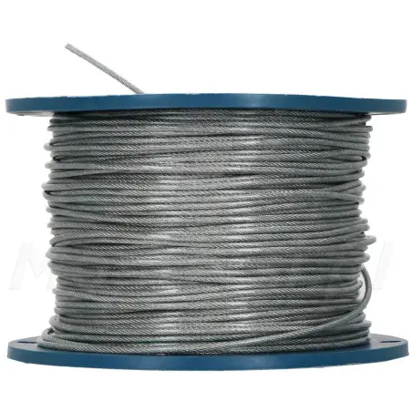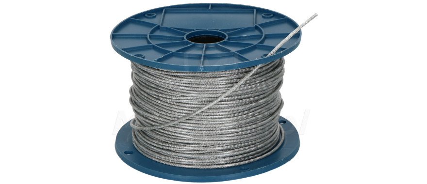 Ocynkowana linka stalowa o średnicy 3mm (2 mm linka + 1 mm PCV), wykonana w splocie konstrukcyjnym 6 x 7. Jej cechą szczególną jest oplot wykonany z tworzywa sztucznego PCV (+1 mm) - dodatkowo uodparnia linkę przed wpływem czynników zewnętrznych, które mogą powodować jej przedwczesne zniszczenie.