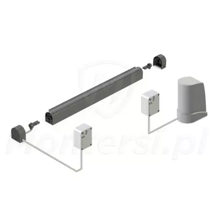 Listwa składająca się z gumowego profilu zmieniającego rezystancję po ściśnięciu. Urządzenie znacznie podnosi bezpieczeństwo używania bramy, poprzez zmniejszenie impetu ewentualnego uderzenia bramy w przeszkodę i natychmiastowe odwrócenie kierunku pracy silnika. Długość listwy oferowanej w zestawie wynosi 150 cm.
