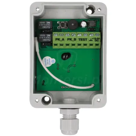 Kontroler umożliwiający bezprzewodową komunikację między czujnikiem kontaktronowym lub listwą rezystancyjną a centralą napędu. Dzięki niemu możliwe jest zintegrowanie oraz poprawna praca zestawu z napędem bramowym. Komunikacja między modułami odbywa się z wykorzystaniem częstotliwości 868 MHz. Całość składa się z dwóch urządzeń: