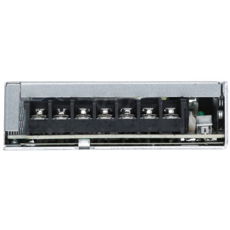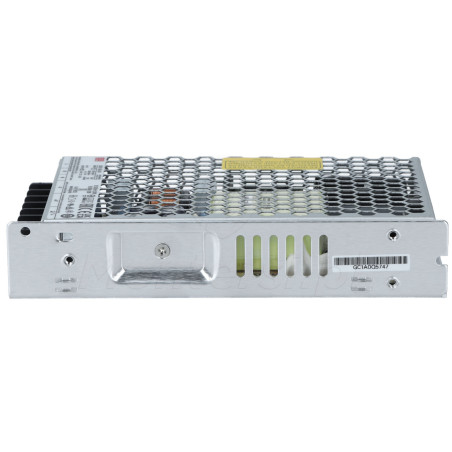 Zasilacz LRS-150-12 został zamknięty w niewielkiej, płaskiej obudowie, dzięki czemu z łatwością mieści się w ciasnych szafkach, rozdzielniach i obudowach systemowych.
