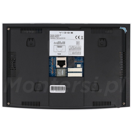 Urządzenie może być zasilane w dwojaki sposób. W mniejszym systemie do zasilania możemy użyć standardowego zasilacza 12 V. Podczas instalacji monitora w bardziej rozbudowanym systemie rolę zasilania może przejąć switch PoE. Dzięki temu dane oraz zasilanie będą transmitowane przy użyciu jednego przewodu