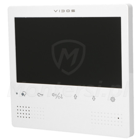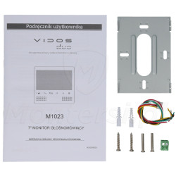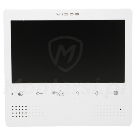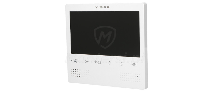 M1023W - Podstawowy monitor głośnomówiący, dedykowany do pracy w jednoabonentowym lub wieloabonentowym systemie wideodomofonu VIDOS DUO. Do jego cech wyróżniających można zaliczyć: