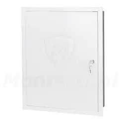 MB-OMP5 to solidna obudowa przeznaczona do zastosowań wewnętrznych, wykonana z blachy stalowej ocynkowanej elektrolitycznie. Tylna część obudowy wykonana jest ze sklejki, co ułatwia montaż osprzętu. Drzwi można zamontować z prawej lub lewej strony, a ich zamknięcie zabezpiecza zamek patentowy z kompletem dwóch kluczy. W dolnej i górnej części znajdują się perforowane otwory do łatwego wprowadzenia przewodów. Rozwiązania te zapewniają wygodny montaż i bezpieczne przechowywanie elementów instalacji RTV i monitoringu.