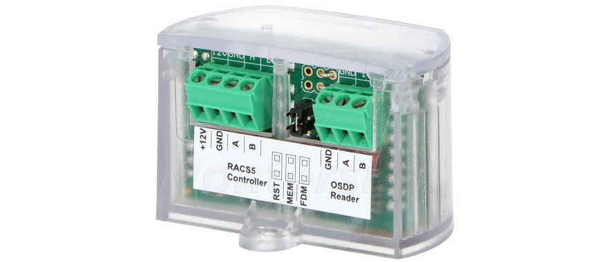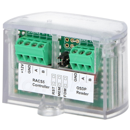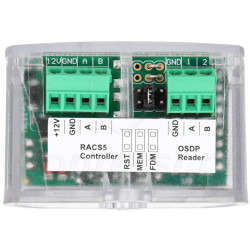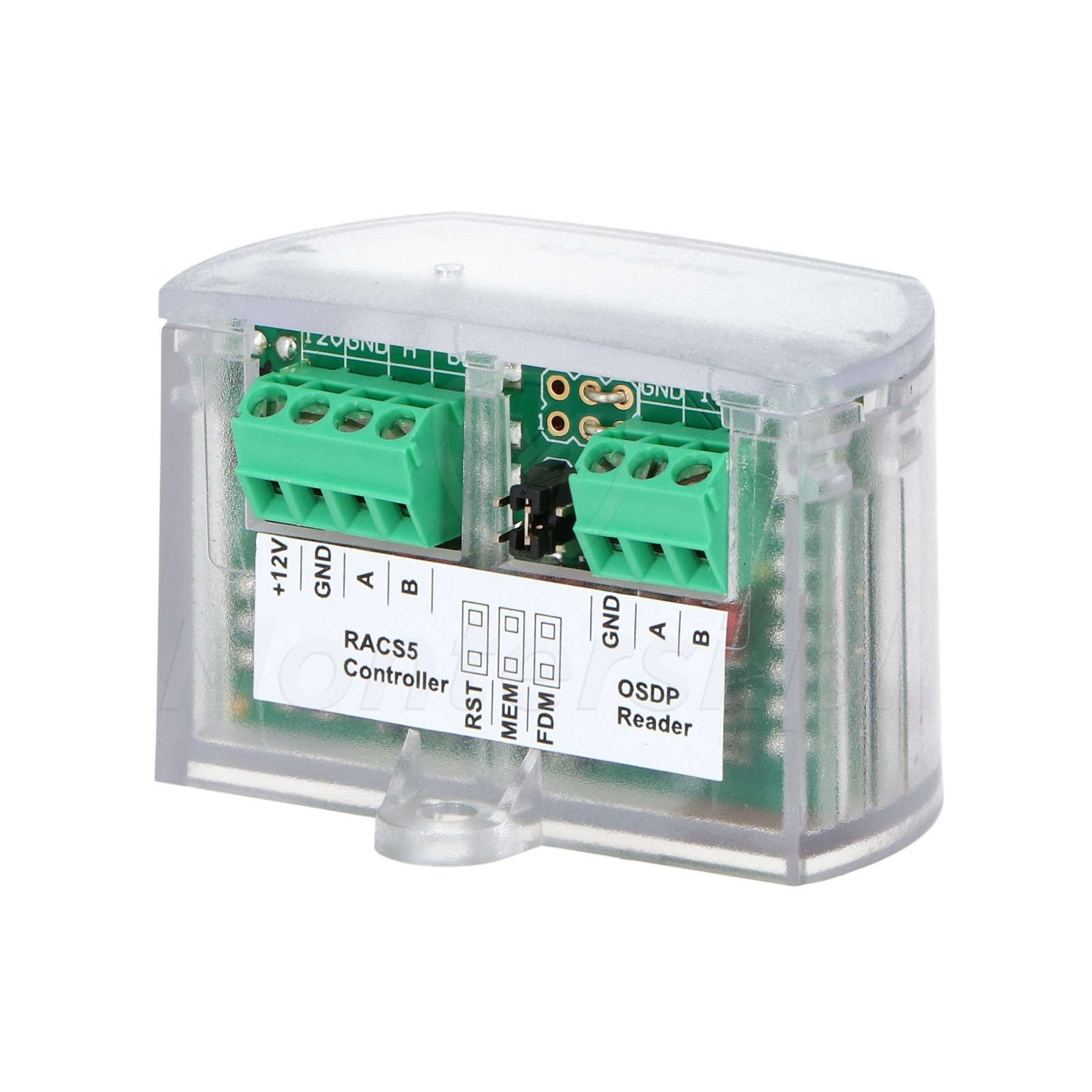 MCI-3-LCD - Interfejs umożliwiający podłączenie czytnika OSR88M-IO wykorzystujących protokół OSDP do kontrolera dostępu działającego w systemie RACS 5 ( MC16). Interfejs zamienia standard OSDP v2 na standard EPSO 3 stosowany w urządzeniach firmy Roger.