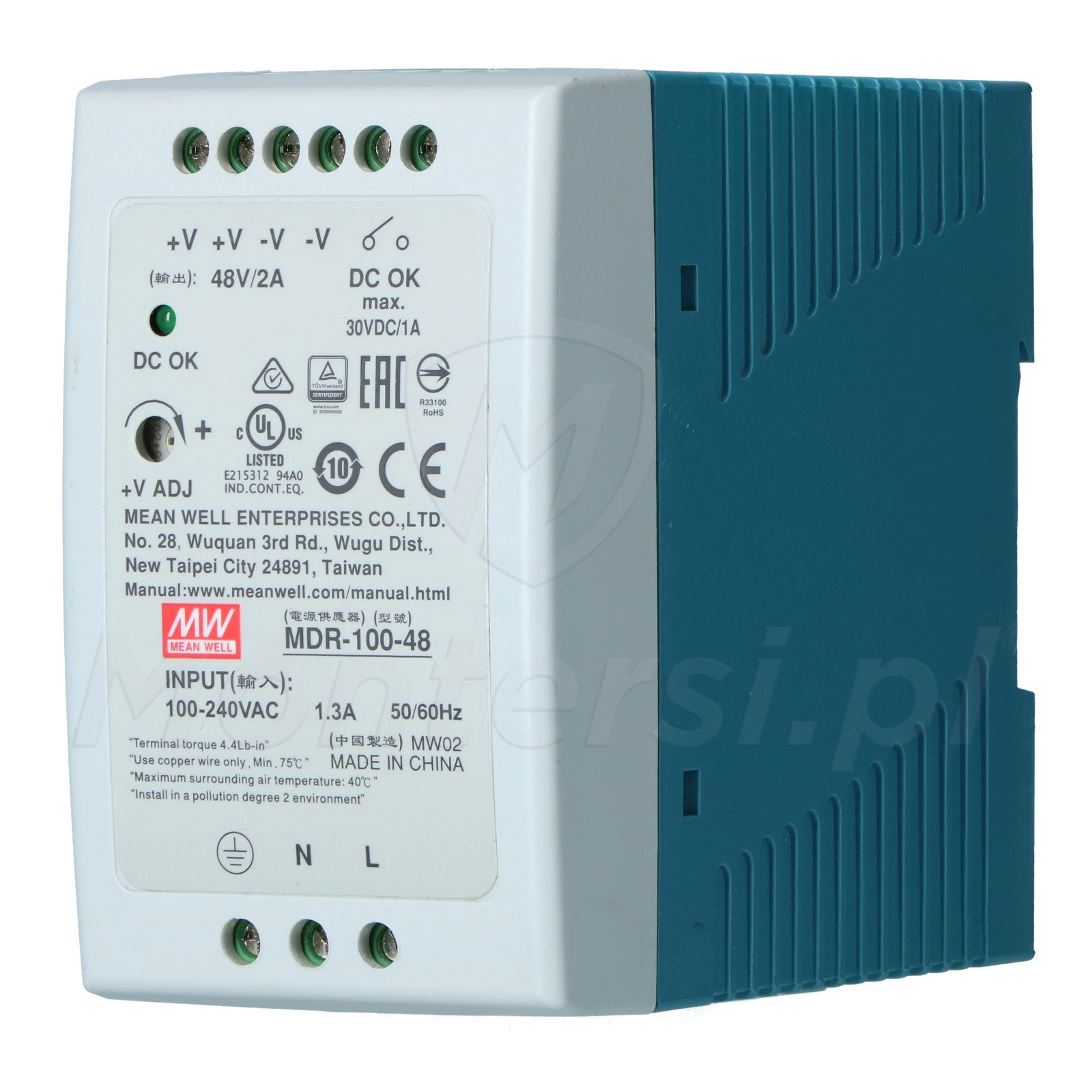 MDR-100-48 - Zasilacz na szynę DIN 48V/1x2A